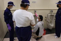 群馬県ビルメンテナンス協会より講師をお招きして、実際の仕事の中で行われる手順や技法を丁寧に教えていただきました。