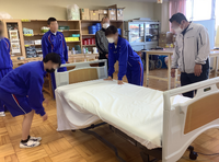 11月26日(水)、1年サービス総合科の生徒を対象としたビルクリーニング講習会、2・3年福祉選択の生徒を対象としたベッドメイキング講習会を行いました。