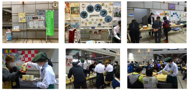 12月2日(火)、館林市総合福祉センターにて、喫茶サービス「宇宙カフェ」を開催しました。この日は社会福祉協議会との共同企画で、「グランツの演奏とカフェを楽しむ」と題して、グランツの皆さんが美しい演奏を奏でる中での喫茶サービスとなりました。この日お越しいただいたお客様は115名と、たくさんの方に飲み物を提供することができました。接客対応した生徒からは、「疲れたけど、お客様から『おいしかったよ。ありがとね。』と声をかけていただけて、すごくうれしかった。」という感想を聞くことができました。地域の方とのつながりを感じることができた有意義な校外での学習となりました。